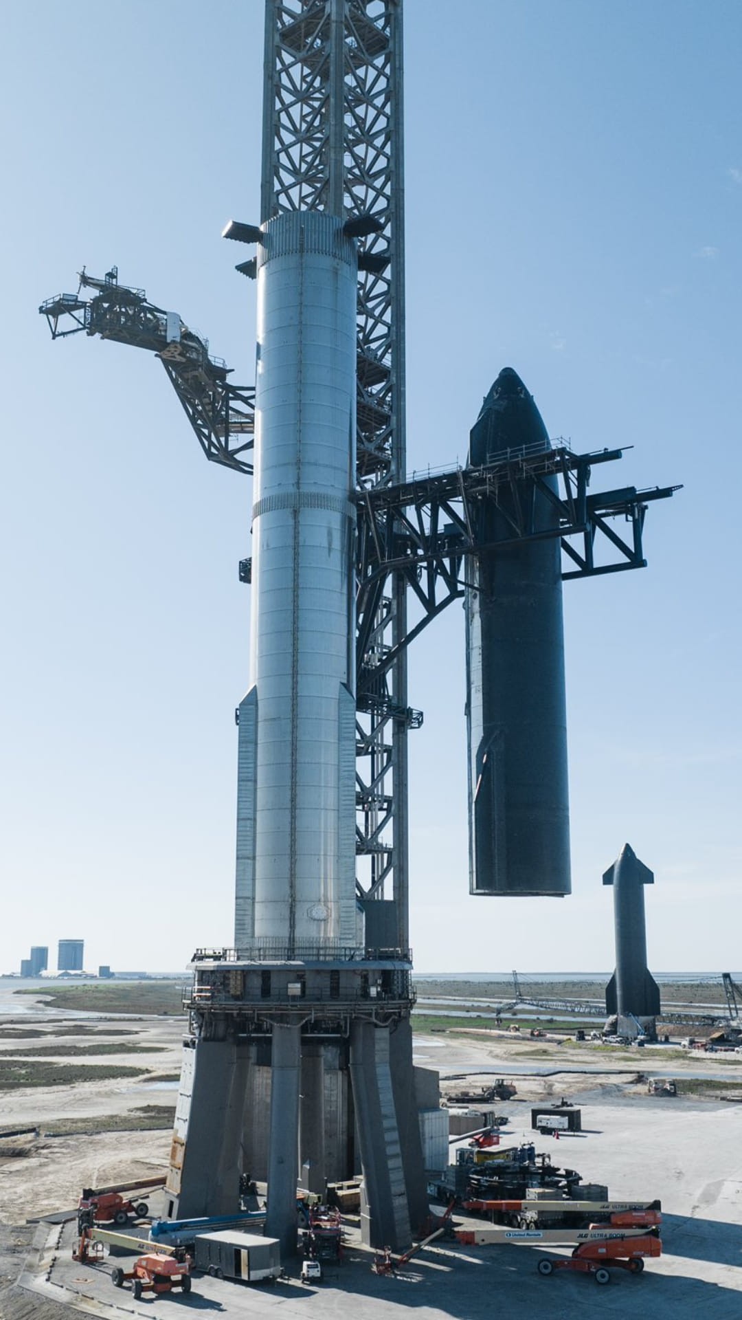 Tháp phóng “khổng lồ” Mechazilla “gắp” tên lửa đẩy “siêu to” $\approx$ toà nhà 30 tầng & tàu vũ trụ Starship