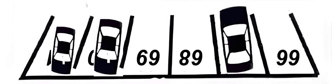 Short Answer: Flip the image upside down, and you’ll see the sequence 86, x, 88, 89, 90, 91. So, the car is parked in space number 87.