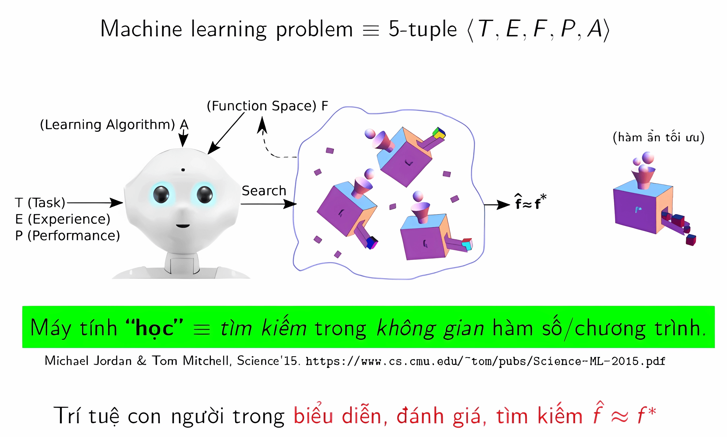 Machine learning là ngành cho phép chúng ta xây dựng các mô hình AI tốt từ dữ liệu: Data $\xrightarrow{ML} \hat{f} \approx f^*$